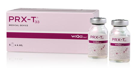新開発されたPRX-T33は、33%の高濃度TCAに低濃度過酸化水素を配合することで、皮膚表面に強い剥離作用を起こすことなく真皮深層に浸透し、繊維芽細胞を刺激してコラーゲンの生成を強力に促進します。