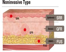 皮膚の表面から筋肉まで、全ての皮膚層に熱を与えることで、お肌を傷つけることなくシワやたるみを改善させる最新機器です。 コラーゲンの生成能力がアップし、緩んだ肌は元気を取り戻し、シワ・たるみ改善効果を得ることができます。